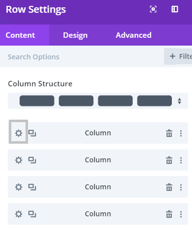 Click on the grey gear icon to access the Button Settings (on the button, that you want to filter with). You can also use images, or any other element to trigger the filtering. It doesnβt have to be a button module.